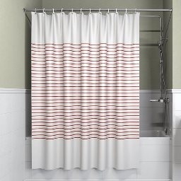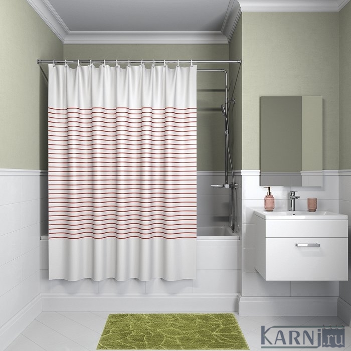 Занавеска из 100% полиэстера для ванны с 12 люверсами под кольца. Штора обработана специальной пропиткой, отталкивающей воду.